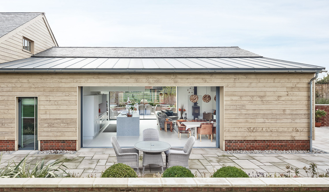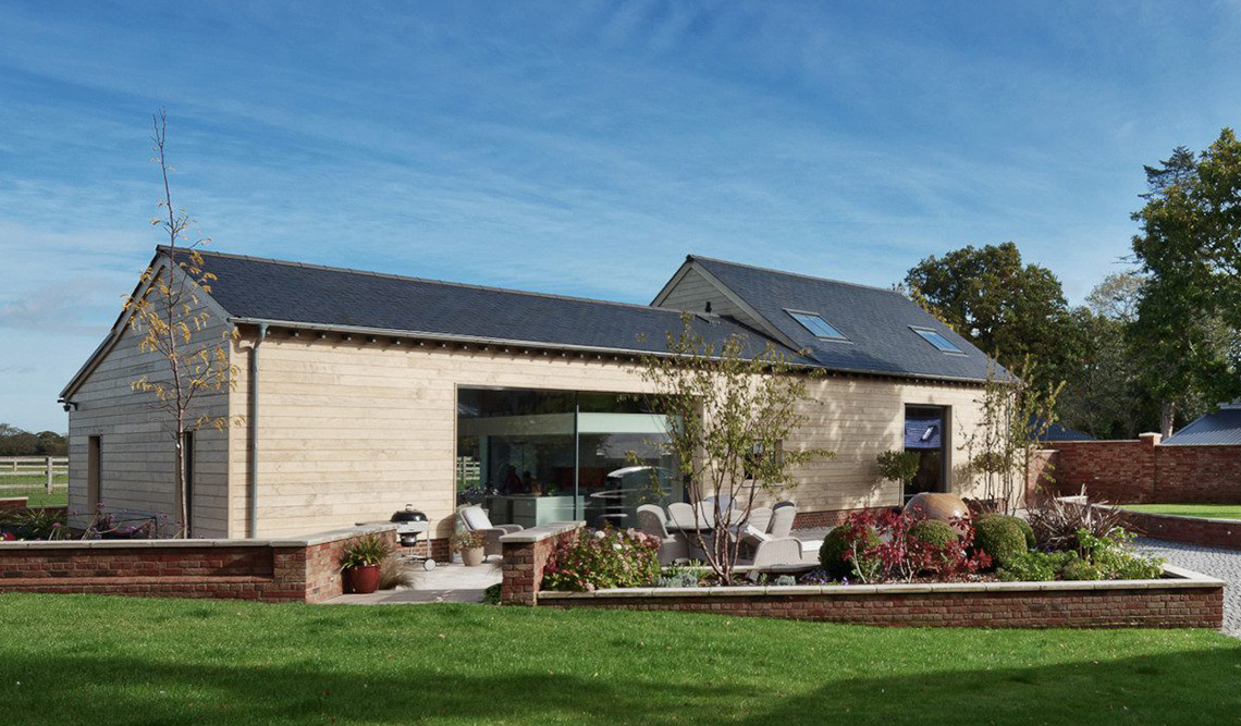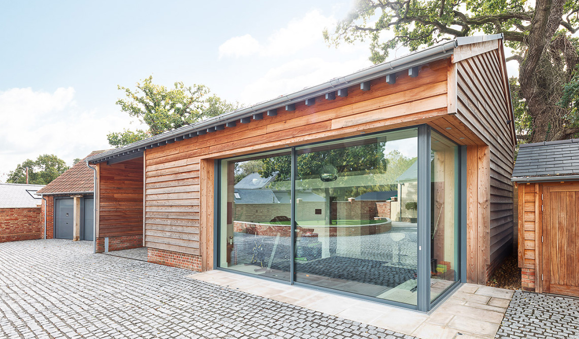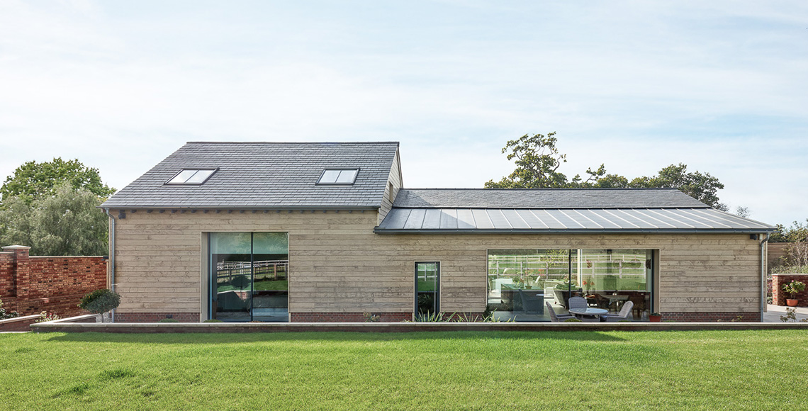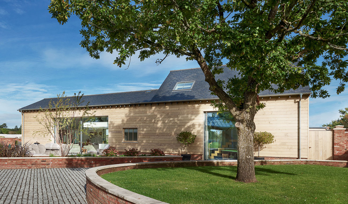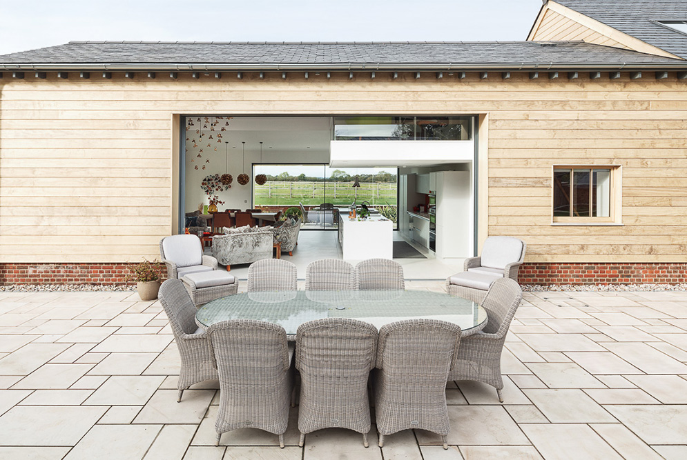 As with many existing buildings, the project came with its design restrictions, however, the carefully considered interventions resulted in spaces that are light and airy, with a contemporary feel. The special nature of this barn conversion was achieved through the introduction of double height spaces, lit naturally with large sliding, glazed doors and roof lights. The materials were carefully chosen to reflect an agricultural building, whilst ensuring that a contemporary and modern family home was the end result.