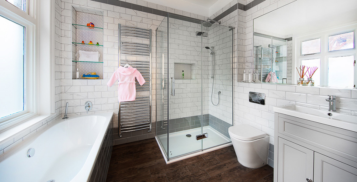 The brief was to turn this house in to a modern family home. This was achieved by opening up the existing rooms, to provide a large kitchen-family space with direct access to the garden. The landing was opened up on the first floor, allowing more natural light to flood in to the space. The loft was also converted to provide a master suite with sea views and a real ‘wow’ factor.