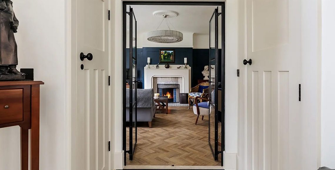 Internally, the house already had a huge number of traditional features that our clients were keen to retain. These have been renovated and complemented further, through the introduction glazed screens between the hallway and snug, and between the hallway and sitting room. By introducing these new design features, we have allowed the spaces to remain separate, whilst flooding them with natural light and the result is a house that feels bright, contemporary, and warm.